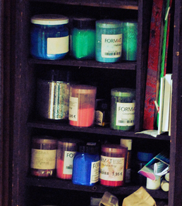 Material: Aquarellfarben, Pastellkreiden, Kohle, Stifte u.a. Materialien